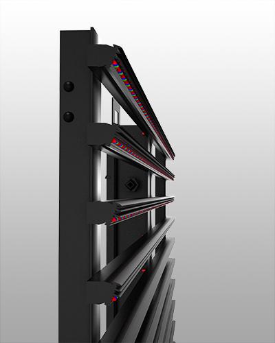 插燈式設計,下傾角可定制;低能耗,較常規(guī)箱體式LED顯示屏節(jié)能達60%