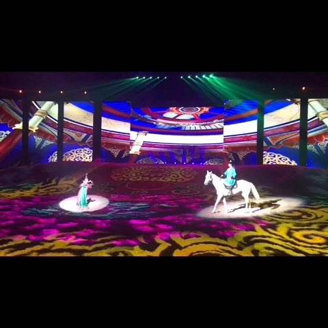 《千古馬頌》劇目演出以蒙古族歌、舞、樂、雜技等藝術(shù)元素,融合高科技聲光電及全息影像投影技術(shù),以全新藝術(shù)形式演繹了馬背家園的溫情,百駿出征的壯觀,草原兒女的情愫,千古馬頌的絕唱!將人與馬的情緣演繹的淋漓盡致,唯美震撼……