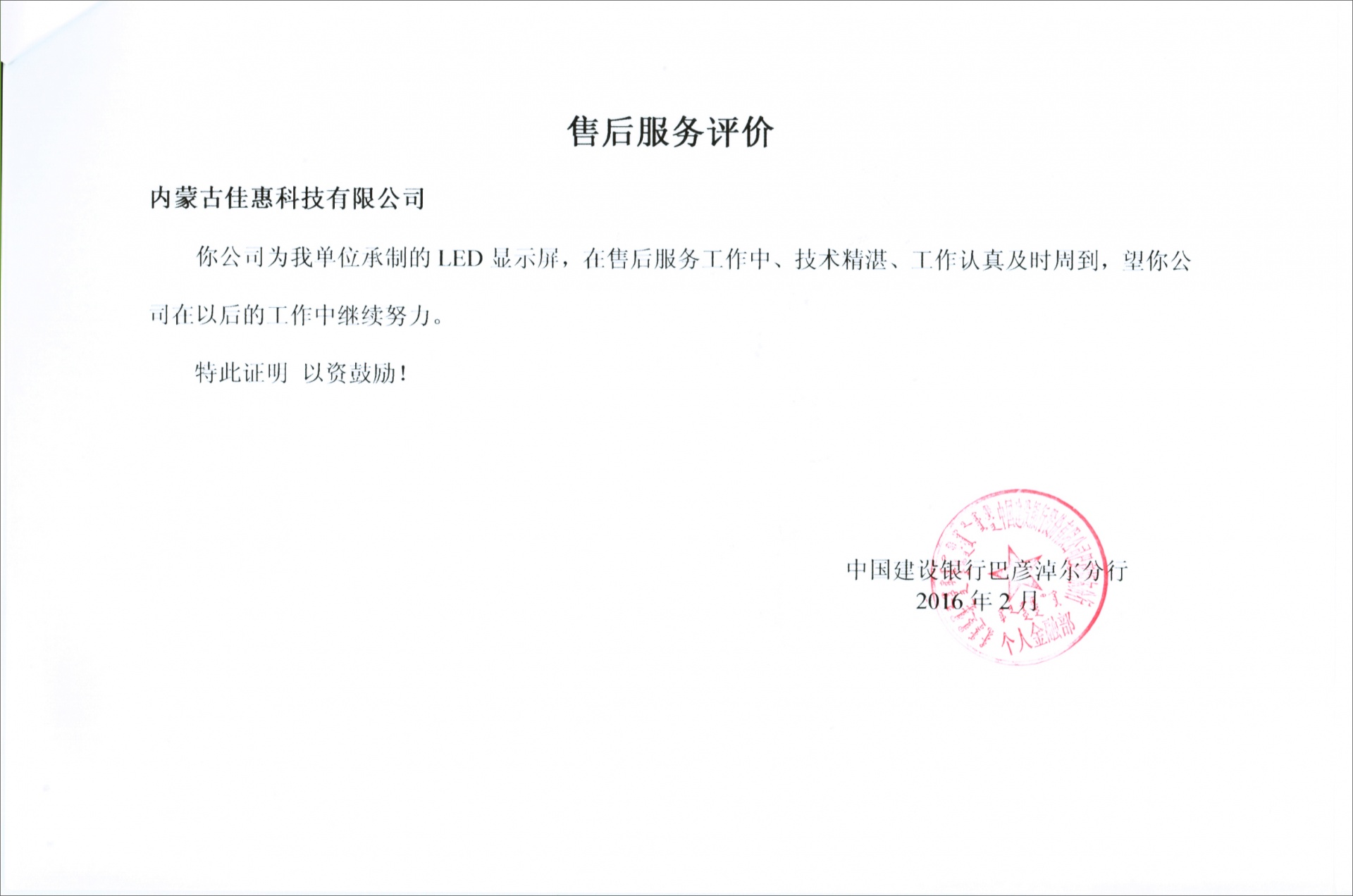 上一條中國建設(shè)銀行內(nèi)蒙古分行呼和浩特優(yōu)質(zhì)服務(wù)證書