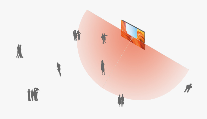可視角度120度,傳播面更廣,傳播效果更佳,覆蓋90%的廣告受眾。