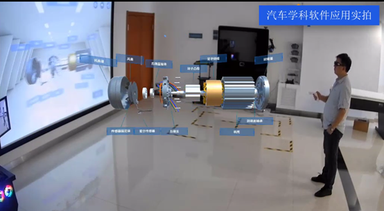 我公司所研發(fā)的虛仿多功能實訓(xùn)中心是為高教、職教院校打造的集“教、學(xué)、做、訓(xùn)”一體化創(chuàng)新空間,創(chuàng)新自主學(xué)習(xí)“理-虛-實”一體化機(jī)械學(xué)科技能人才培訓(xùn)模式。3D全息群體教學(xué)、小組MR沉浸實操等多形態(tài)技術(shù)與實訓(xùn)方式,達(dá)到互動性、交互性、自主性、營造“基于真實工作場景的仿真學(xué)習(xí)環(huán)境”,通過真實學(xué)生個體與數(shù)字仿真環(huán)境的相互融合訓(xùn)練技能,在課堂中引入數(shù)字化沉浸式仿真交互實訓(xùn)內(nèi)容,通過教學(xué)系統(tǒng)對用戶、仿真實訓(xùn)資源等進(jìn)行科學(xué)應(yīng)用,為培養(yǎng)高素質(zhì)復(fù)合型人才提供“虛實結(jié)合”“以虛補(bǔ)實“的新型實訓(xùn)教學(xué)空間。